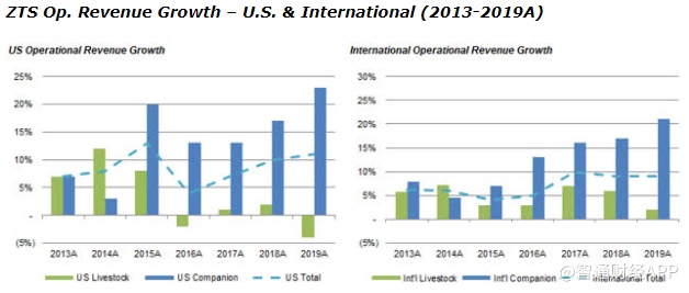 公司的收入具备较强的弹性,因为动物保健产品属于一种关键任务产品,其医疗需求存在反复性,而Zoetis根据地理及物种等因素,提供多样化的产品。