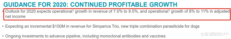 管理层表示,该业绩指引基于2020年全球动物市场增长4%-5%,同时牛市场“恢复增长”。