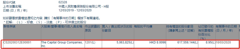 智通财经APP获悉,联交所最新资料显示,3月10日,美国资本集团减持中国财险(02328)506.3825万股,每股作价8.0096港元,总金额约为4055.92万港元。减持后最新持股数目约为6.18亿股,最新持股比例为8.95%。