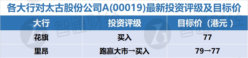 六、各大行对太古股份公司A(00019)最新投资评级及目标价