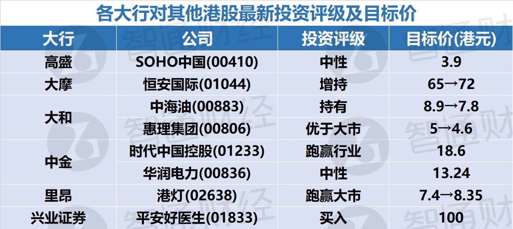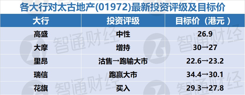 七、各大行对太古地产(01972)最新投资评级及目标价