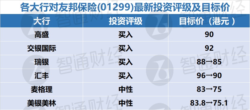 八、各大行对友邦保险(01299)最新投资评级及目标价