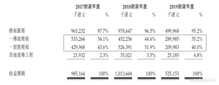 从收入构成看,2019财年,55%收入来自传统模板,40%来自预制模板,其余约4.8%由其他建筑工程贡献。