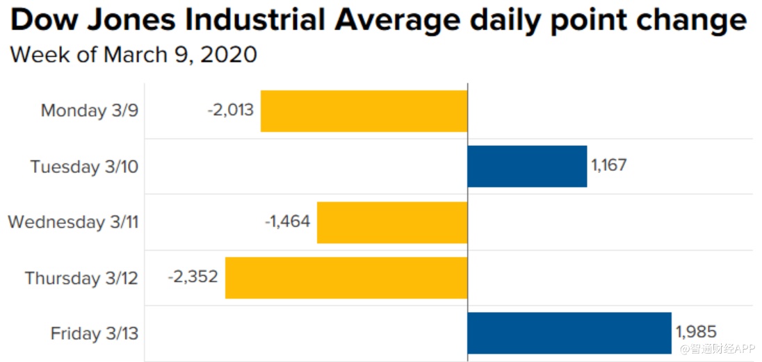 本周以来,尽管周五大幅上涨,主要平均股仍录得大幅下跌。道琼斯指数本周下跌了10%,而标普500和纳斯达克指数分别下跌了8%以上。周四股市走势标志着历史上最长牛市行情的正式结束,标普500指数经历逾30年来最糟糕的一天暴跌9.5%,与道指一起跌入熊市,道指也经历了自1987年以来最大的跌幅。