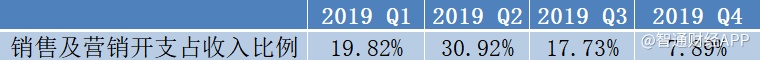 2019年第二季度时,荔枝的营业费用占比接近50%,这是因为公司加大了销售及营销开支,以获得更多用户。在该季度内,销售及营销开支占比为30.92%,较一季度时高出近11个百分点。