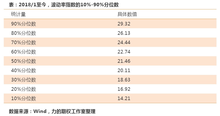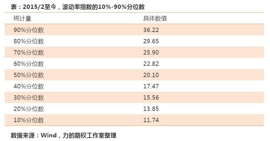 如果用统计分位数的角度加以数据整理,您就会更清楚的看到,这五年以来,波动率指数各档分位数究竟在什么点位了,波指在什么点位算高,在什么点位算低。