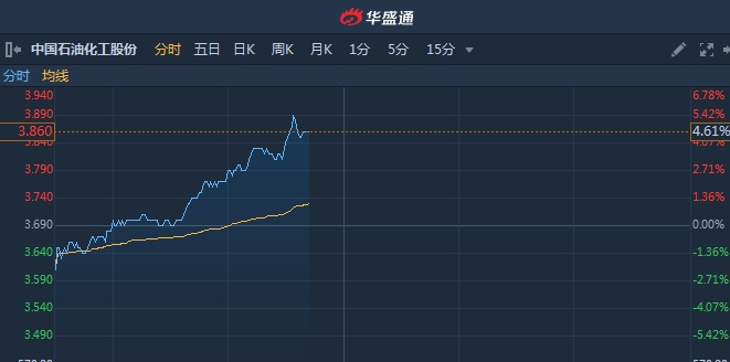 智通财经APP获悉,中国石油化工股份(00386)获小摩上调目标价8%至5.01港元,评级升至“增持”,截至11时41分,涨4.61%,报价3.86港元,成交额4.878亿。