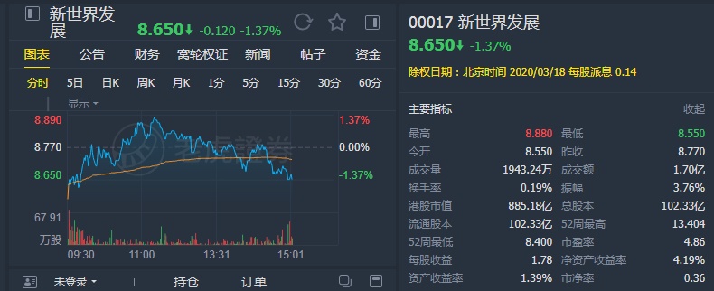 另外,联储局再度减息将会有助于供楼人士的负担能力,并为楼价提供支持。该行预期新世界快将推出大围住宅项目的第一及第二期,合计共2200个单位,相信平均尺价为19000元,总收益为250亿元,较其2019财年的香港合同销售增逾倍。