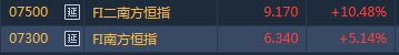 恒指反向杠杆产品逆市大涨,截至发稿,FI二南方恒指(07500)涨10.48%,报9.17港元。FI南方恒指(07300)涨5.14%,报6.34港元。