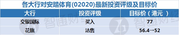 五、各大行对安踏体育(02020)最新投资评级及目标价