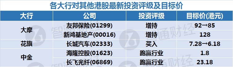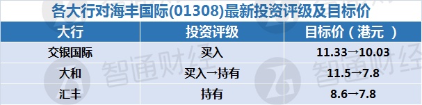 六、各大行对海丰国际(01308)最新投资评级及目标价