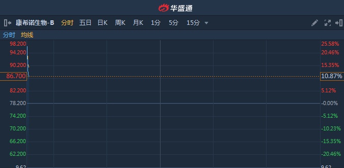 智通财经APP获悉,康希诺生物-B(06185)早间发布公告称,公司与军事科学院军事医学研究院生物工程研究所(联合开发方)正在联合开发重组新型冠状病毒疫苗(腺病毒载体)(Ad5-nCoV),早盘一度高开23%,截至9时31分,涨10.81%,报价86.65港元,成交额1701万。