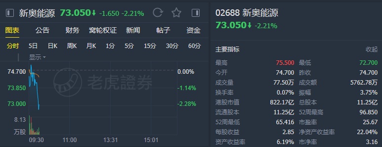 智通财经APP获悉,交银国际发表研究报告表示,将新奥能源(02688)目标价104.8港元下调4.39%至100.2港元,并维持“买入”评级,主要由于负面因素已大致反映,股价可调整为买入机会。