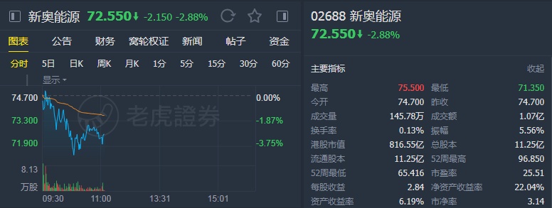 该行下调新奥能源今明两年天然气销售量预测,今年销售量预测自18%下调至13%,明年销售量预测自19%下调至15%,今明两年每股盈利预测11%至15%,目标价相应自98港元下调至94港元,股价调整后估值吸引,维持“跑赢大市”评级。