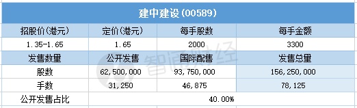 智通财经APP获悉,3月17日,建中建设(00589)配售结束。配售招股价1.35-1.65港元,最终定价1.65港元,每手3300港元。