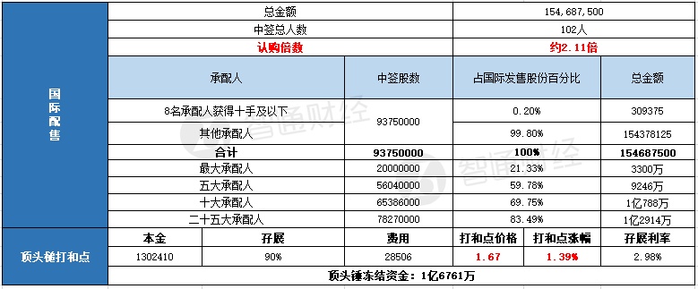 国际配售申购人数未披露,认购倍数约2.11倍。