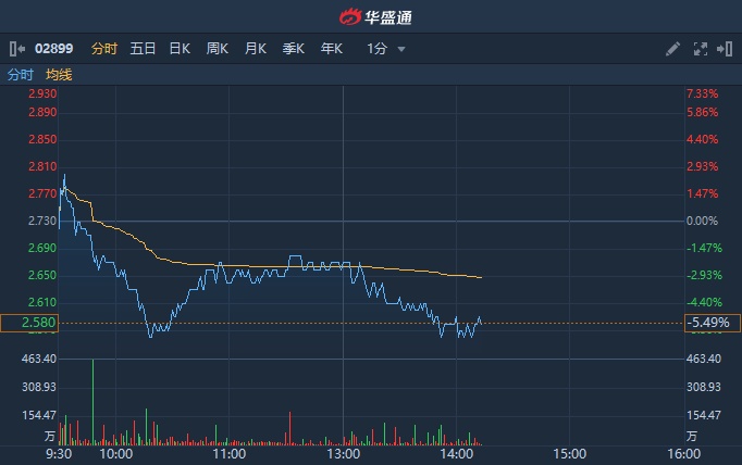 智通财经APP获悉,受全球市场流动性紧缩影响,国际金价近期自1700美元高位连续暴跌。今日盘中现货黄金跌破1490美元/盎司关口。受此影响,紫金矿业股价亦持续阴跌。截至发稿,跌5.49%,报2.58港元,成交额1.57亿港元。