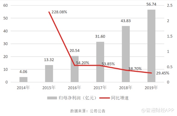 中通快递2019年实现归母净利润56.74亿元,同比增长29.45%,虽然其归母净利润同比增速在2015年-2019年期间逐渐放缓,但均高于同期的营收增速,这主要得益于公司良好的控费能力。