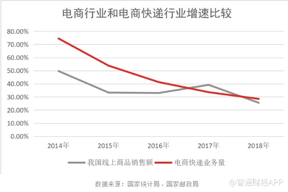 电商快递的核心驱动力来自电商,快递行业增速与电商行业增速保持一致。电商行业增速下滑将导致快递行业增长乏力。