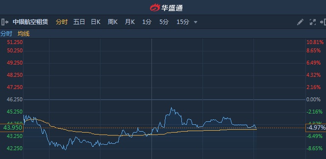 智通财经APP获悉,中银航空租赁(02588)近期股价连续下探,月初至今累计跌幅达35%。截至15时02分,跌4.97%,报价43.95港元,成交额2.776亿。