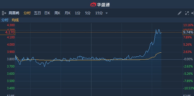 港股异动︱周黑鸭(01458)盘中直线拉涨逾5% 月初至今累计涨幅超20%