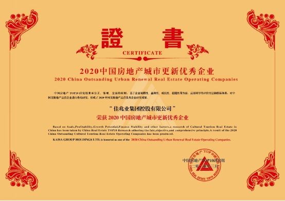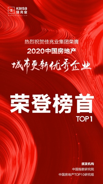 3月17日,由中国指数研究院、中国房地产TOP10研究组主办的“2020中国房地产百强企业研究成果发布会”顺利召开,得益于强势增长的业绩和突出的盈利能力,以及在城市更新领域的领先优势,佳兆业集团(01638)荣登“2020中国房地产城市更新优秀企业”TOP1,凸显权威机构及投资者对佳兆业城市运营实力的高度肯定。