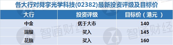五、各大行对舜宇光学科技(02382)最新投资评级及目标价