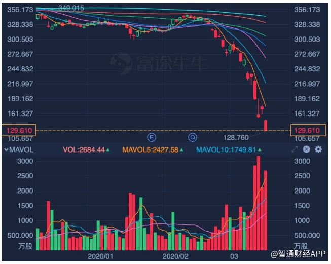 在Dennis Muilenburg执掌公司期间,波音股价累计上涨逾136%。该股去年3月1日还创下了历史新高,达到446美元,昨日收盘只有136.01美元,较峰值跌去70%,是2016年9月以来最低,大幅低于其200日均线和50日均线。