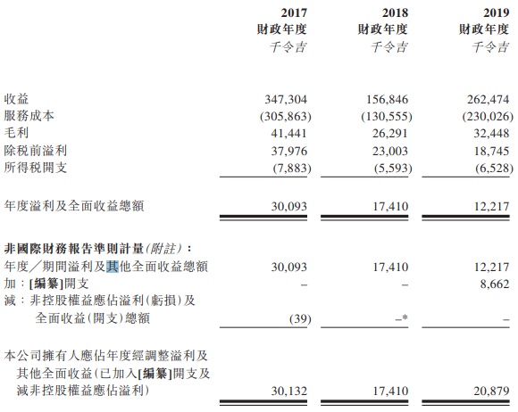2017~2019财政年度,公司毛利率分别为11.9%、16.8%和12.4%;纯利率分别为8.7%、11.1%和4.6%。