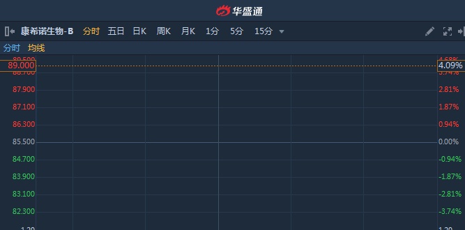 智通财经APP获悉,康希诺生物-B(06185)早间发布公告,重组新冠病毒疫苗获批进入临床试验,早盘涨势延续,截至9时20分,涨4.09%,报价89港元,成交额106.8万。