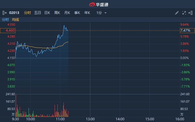 智通财经APP获悉,微盟(02013)盘中直线拉升,涨超8%,截至北京时间11:13分,涨7.71%,报4.47港元。