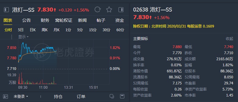 该行指,虽然至2024年前未见提升派息机会,因须为新发电设备投放成本,但收益率对比美债息率间差距加大,或可视为变相加派息。该行上调港灯目标价,自8.5港元上调至8.7港元,维持“中性”评级。