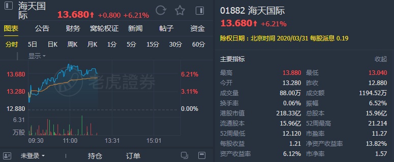 智通财经APP获悉,小摩发布报告称,海天国际(01882)2019财年盈利较该行及市场分别低11%及3%,主要是由于收入表现差过预期。该行将公司2020及2021财年的每股盈利预测分别调低23%及20%,目标价下调18%至18港元,认为其估值吸引,维持“增持”评级。