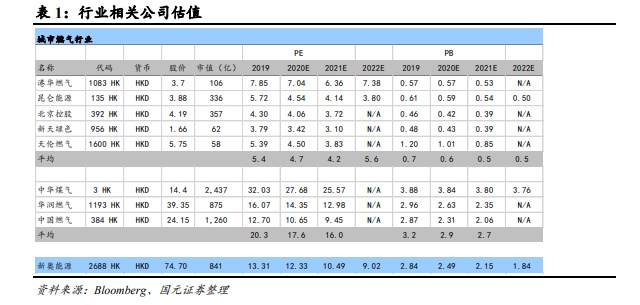 预期 2020 年零售气量增长 25%,核心净利润增长 15%:公司 2020 年零售气量增长目标为 12%-15%,全年核心净利润增长目标为 15%。2019 年公司实现零售天然销气量 199.24 亿立方米,综合能源销售量 68.47 亿千瓦时,分別同比增长 14.7%和 137.2%。公司目前持有 LNG 长协合约价格目前非常具有竞争优势,有利降低公司天然气采购成本,为公司天然气毛差的稳定性提供直接保障。我们预计公司天然气零售业务,综合能源业务的持续增长,以及综合毛差的稳定将支撑公司业绩的稳定增长。