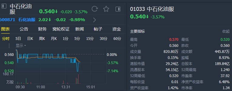 该行将中石化油服今明两年的每股盈测降至38%至50%,及目标估值倍数由预测市账率2.3倍降至1.5倍,以反映前景更为疲弱,将目标价由1.15港元降至0.7港元,维持“跑赢大市”评级。