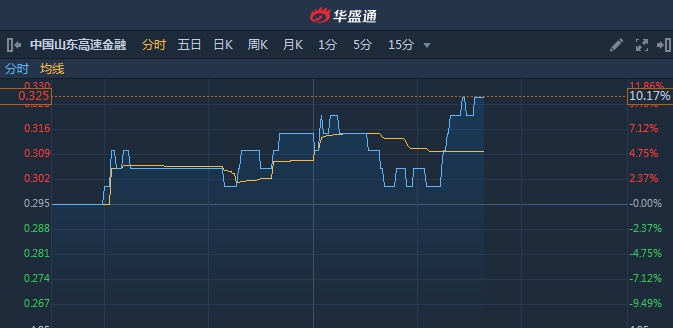 智通财经APP获悉,中国山东高速金融(00412)遭昊天发展集团(00474)出售28.3亿股,套现8亿港元。截至14时35分,涨10.17%,报价0.325港元,成交额19.56亿。