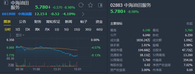 智通财经APP获悉,瑞信发表报告称,中海油田服务(02883)近期的股价调整为提供良好的买入点,认为其估值合理,处今年市盈率8倍及市账率0.7倍水平,其中市账率为2016年以来的最低位,但集团盈利较当年有明显提高。由于目标估值倍数由今年预测市账率1.6倍降至1倍,以反映行业前景更为疲弱,故下调对中海油服H股目标价,由15港元降至9港元,维持“跑赢大市”评级,并下调其今明两年每股盈测12%至14%。