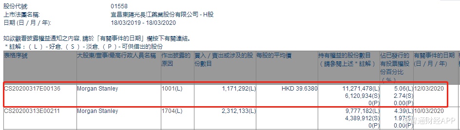 智通财经APP获悉,联交所最新资料显示,3月12日,摩根士丹利增持东阳光药(01558)117.13万股,每股作价39.638港元,总金额约为4642.80万港元,增持后持股数目约为1127.15万股,持股比例为5.06%。