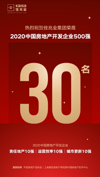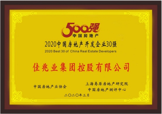 3月18日,由中国房地产业协会、上海易居房地产研究院中国房地产测评中心联合主办的“2020中国房地产开发企业500强测评成果”正式发布。佳兆业集团(01638)凭借过硬的综合实力位列 “2020中国房地产开发企业30强”。
