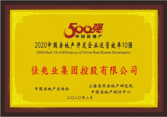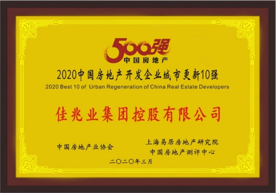 此外,凭借旧改领域的强大竞争力,稳健的财务水平及在社会公益领域所做出的突出贡献,集团荣获“2020中国房地产开发企业城市更新10强”、“2020中国房地产开发企业运营效率10强”、“2020中国房地产开发企业责任地产10强”等三项大奖。