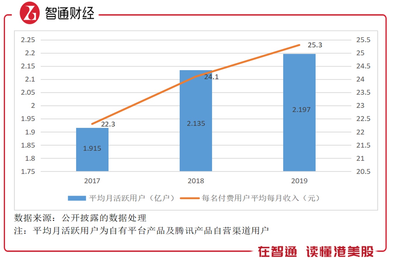 2019年,阅文自有平台产品及腾讯产品自营渠道平均月活跃用户2.197亿户,同比增加620万户,平均月付费用户为980万户,环比2019H2增加10万户,付费比例为4.5%,每名付费用户平均每月收入25.3元,同比增长5%。变化的背后,是公司主动升级商业模式的结果。