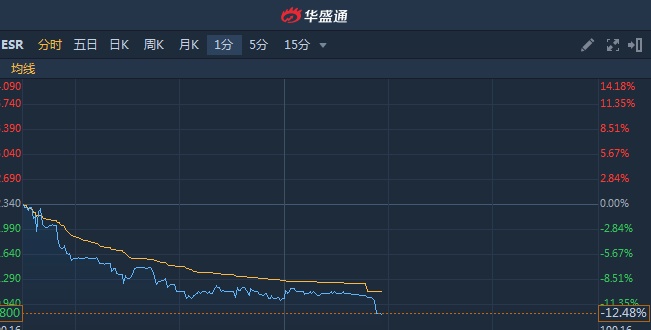 智通财经APP获悉,次新股ESR(01821)股价阴跌不止,暂现七连阴。截至13时55分,跌12.48%,报价10.8港元,成交额2045万。