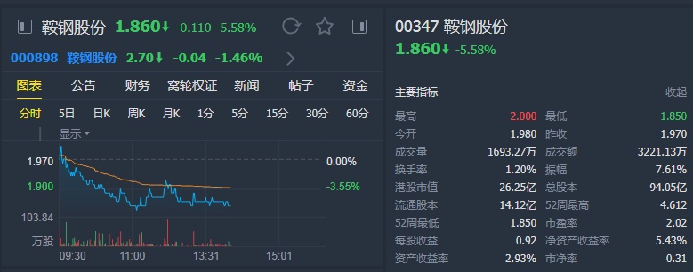 智通财经APP获悉,瑞信发表报告表示,螺纹钢价格自去年年底开始下跌了约12%,因应今年首季的需求疲弱,下调对鞍钢股份(00347)今明两年的盈利预测分别29.6%及35.5%,至19亿元及20亿元人民币,以反映销量及价格较低的预测。