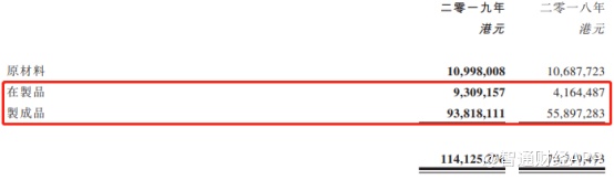 在渠道扩张的同时,公司的以销定产也在有序进行。可以看到,公司在2019年的存货类别中,原材料与2018年基本保持一致,大幅增加的是在制品与制成品存货,分别增长123.53%和67.84%。这反映出公司还是有可观的潜在销售额。