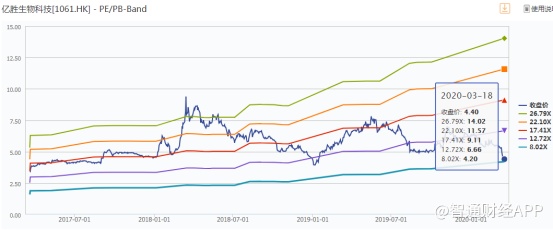 而此时,公司股价仅4.2港元/股,股价回到2015年同期水平,PE(TTM)也仅有8.1倍,与历史估值水平相比,现在公司明显处在估值底部。如果下个财季,亿胜生物的经营和业绩增长逻辑无法被证伪,公司估值可能会被快速修复。