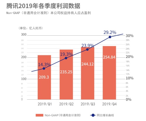 能够看到,腾讯在第四季度无论是收入还是净利润都呈现加速增长态势,竞争优势不断体现。