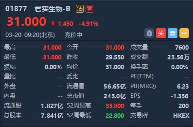 此外,君实生物公布,上交所科创板股票上市委员会定于2020年3月30日审议公司在科创板股票上市事项。公司首次公开发行股票并在科创板上市申请的审核状态为“已问询”。