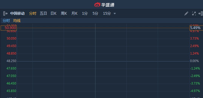 智通财经APP获悉,中国移动(00941)年度股东应占利润同比降9.5%至1066亿人民币,但2020年5G预算开支达千亿。截至9时20分,涨5.49%,报价50.9港元,成交额7099万。
