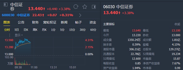 智通财经APP获悉,瑞信发表研究报告,早前中信证券(06030)完成收购广州证券,进一步强化其网络,特别是广东省。该行微调其2020及2021年每股盈测,并计入2022年的预期表现,目标价由21.5港元升至22.1港元,予“跑赢大市”评级。