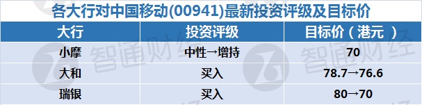 二、各大行对中国移动(00941)最新投资评级及目标价